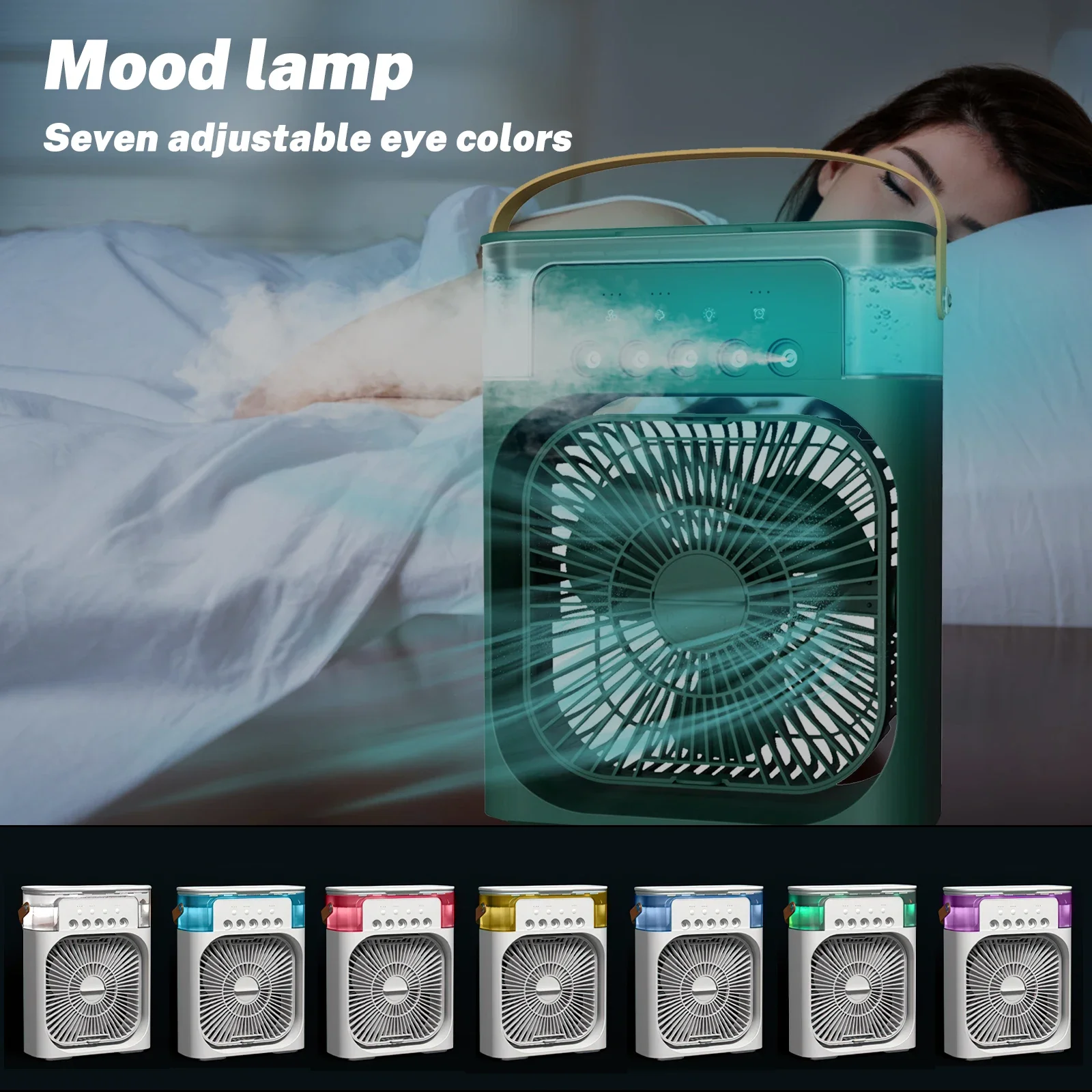 Air Cooler Fan 3 in 1 Mini Portable Fan Humidifier with 7 Colors LED Light Air Conditioner 600ml Tank Water Cooling Misting Fan